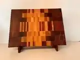 Tabla de madera end grain hecha a mano con diseño geométrico único. Hecha a mano con maderas de alta calidad, combina elegancia y durabilidad en una pieza exclusiva, apta para cortar todo tipo de alimentos. Perfecta también para decoración o como centro de mesa, ideal para quienes buscan una pieza única de madera con un acabado excepcional.