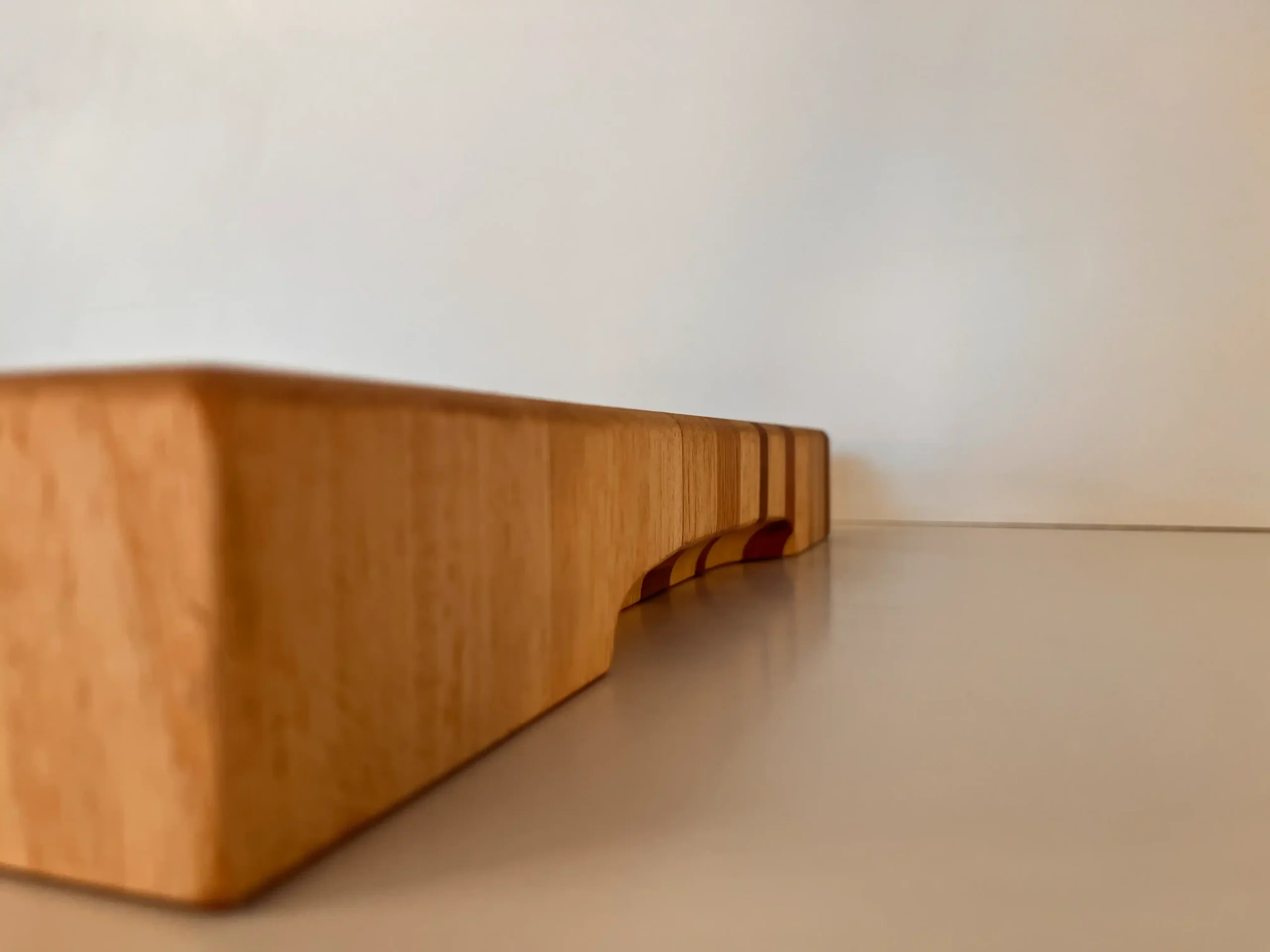 Cada sección ha sido pulida a mano y tratada con aceites y ceras aptas para la cocina. Esto asegura un acabado liso, protector y resistente a la humedad. Asimismo, cada pieza se fabrica con paciencia y precisión, lo que garantiza que no existan dos tablas iguales. Recibes, por lo tanto, una pieza exclusiva con un patrón único.